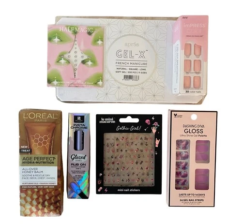 7-Piece New Hand & Nail Beauty Lot Gel Tips Stickers Wraps Chrome Press On