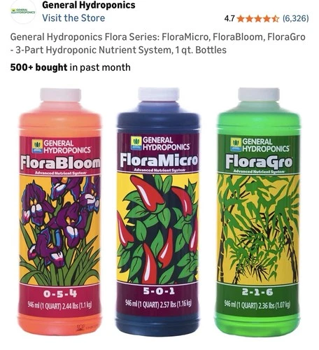 General Hydroponics Flora Series: FloraMicro FloraBloom FloraGro - 3-Part System