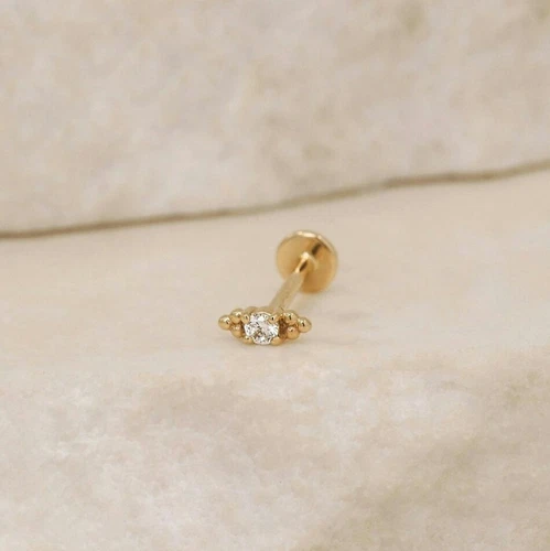14K Solid Gold Milgrain Tiny Threded Piercing Ear/Nose Jewelry piercing Studs