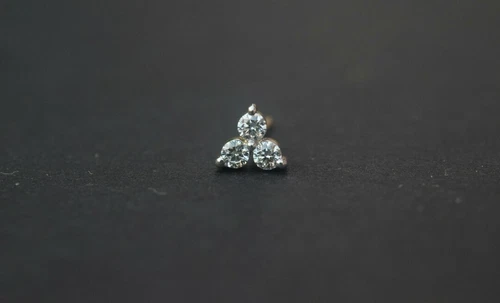 Three Diamond Ear Stud 14k Solid Gold Dainty Body Piercing Jewelry Diamond Stud