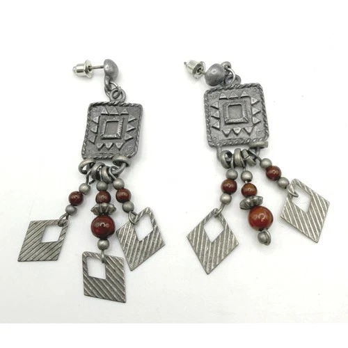 Artisan Style Boho Geometric Dangle Earrings Silver Tone Mixed Shapes 2.5"