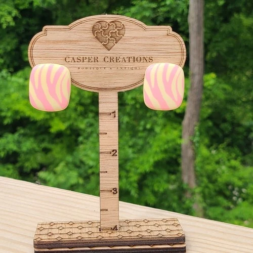 Light Weight Pink And Cream Geometric Shaped Pierced 80s Earrings