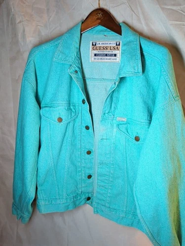 Vintage GUESS 80s 90s American Cut Denim Jacket Teal Turquoise Georges Marciano