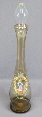 Salviati Murano Hand Enameled Georgian Lady & Gentleman Amber Glass Decanter