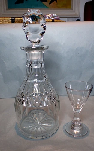 Antique Glass Decanter Faceted Cut Glass Stopper Star Base Georgian