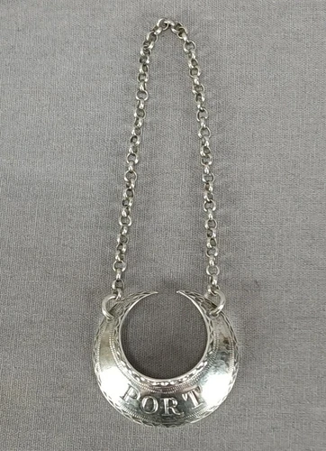 ANTIQUE PORT SILVER PLATED BOTTLE DECANTER LABEL ART NOUVEAU