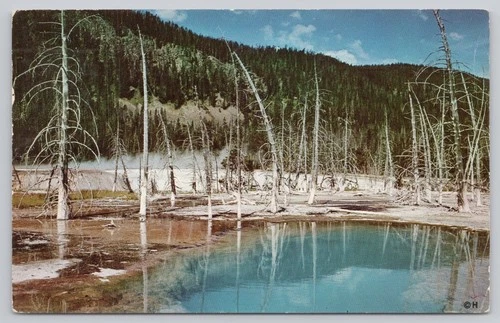 1962 Yellowstone National Park Hot Pool Geothermal Dead Trees Postcard
