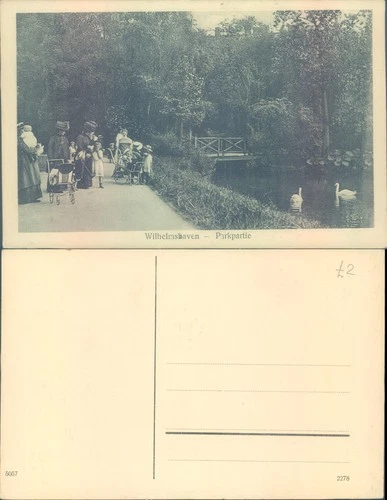 Wilhelmshaven Park Scene Germany Family Swan Printed Lithograph