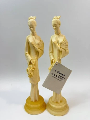 A Giannelli Sculpture Italy 1963 Egregia Figure Woman Statue Set w/ COA