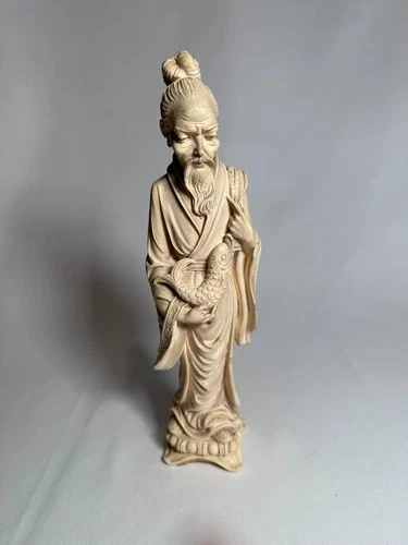 Asian Man Holding Koi Fish Statue Alabaster Style Figurine Vintage A Giannelli