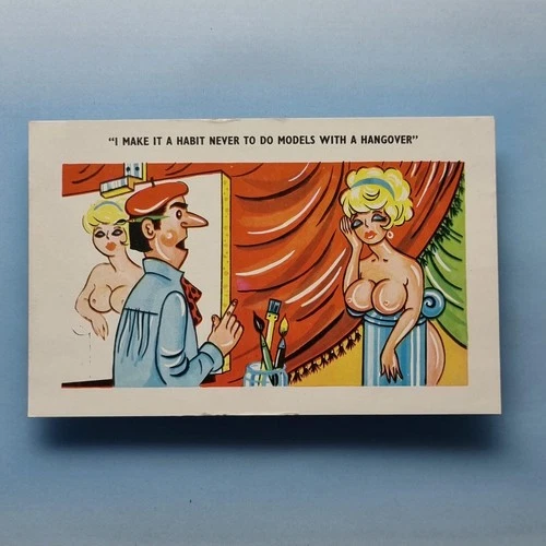 Comic Postcard C1970 Life Model Artist Naked Hangover Giggle Cards