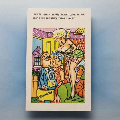 Comic Postcard C1970 Nylon Stockings Upskirt Exterminator Mouse Hole Giggle