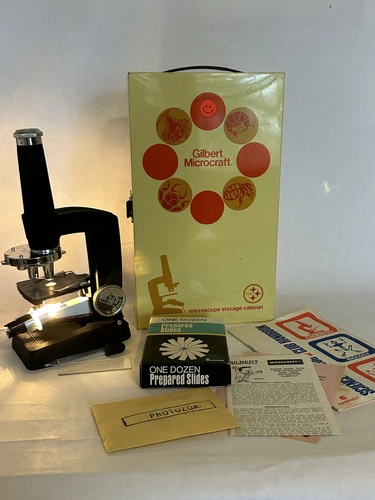 Gilbert Microcraft Microscope W/ Storage Cabinet And Accessories VTG Toy WORKS