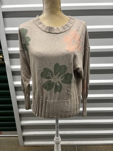 Wispr By Brodie Women's Pullover Sweater Floral Tan Silk Blend Soft Girl Sz Xl
