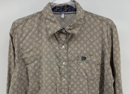 Cinch Western Shirt Tencel Cotton Pearl Snap Microprint Paisley Trim XL 44 inch