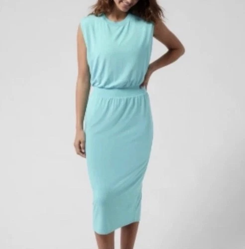 Athleta Santorini Cinch Midi Dress size Small Turquoise Blue Modal Jersey Knit
