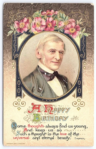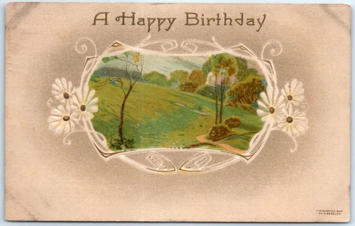 1911 A Happy Birthday Old Man In Pink Flower Framed Greetings Posted Postcard