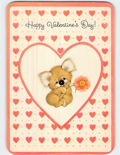 Postcard Happy Valentines Day! with Koala Flower Hearts Valentines Day Art Print