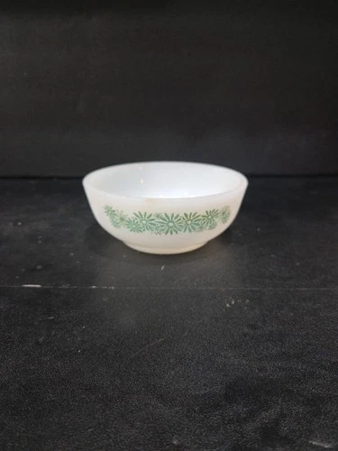 Glasbake Milk Glass Casserole Dish, Green Floral Ovenware, Vintage Glass Bowl