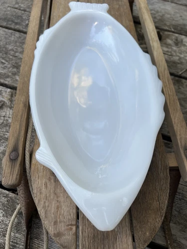VTG Glasbake White Milk Glass Fish Shaped Serving Dish Platter