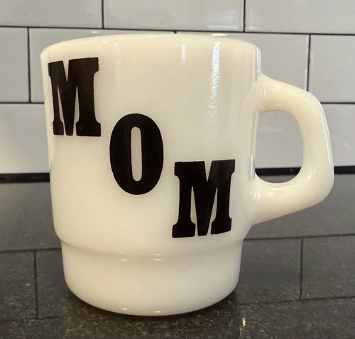 Vintage Milk Glass Glasbake MOM Mug Mothers Day I Love MOM Galaxy MCM Coffee