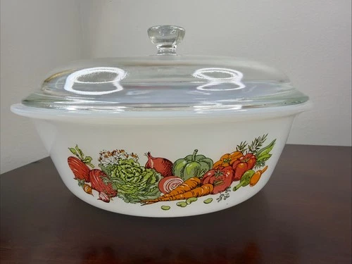Vintage Glasbake Garden Medley 2 quart Round Casserole Dish with Lid J514