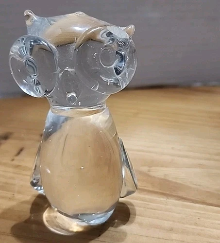 Vintage Mid Century Art Glass Owl Paperweight Pointy Ears Blob Eyes Whimsical