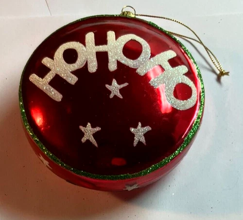 Vintage 1990s Ho Ho Ho Red-Green-White Christmas Holiday Ornament 4 in VG!