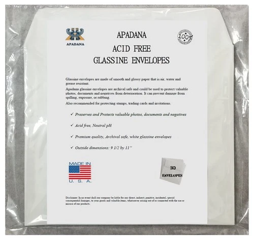 Apadana Acid Free Glassine Envelopes 30 Bags 9 1/2 x 11 Inches