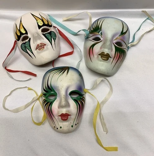 Ceramic Mardi Gras Mask Wall Decor with Glitter Sparkle New Orleans Lot Of 3