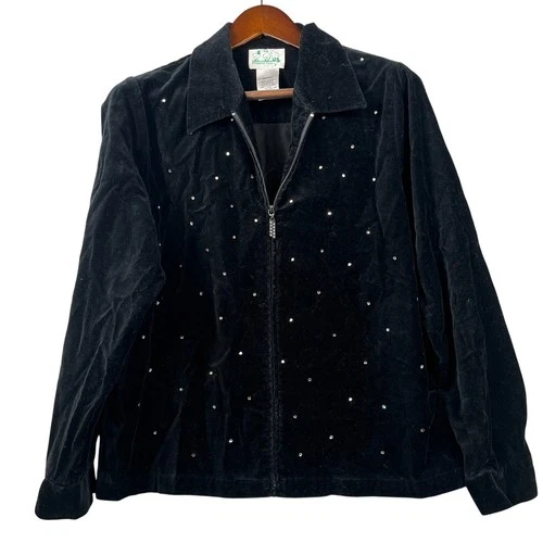 Vtg Quacker Factory Velour Jacket S Black Rhinestone Sparkle Y2K Glam Party