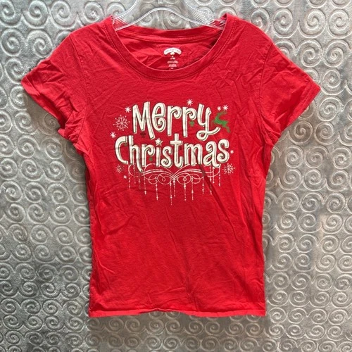Holiday Time Merry Christmas Red Cotton T Shirt Kids Size M 8 10