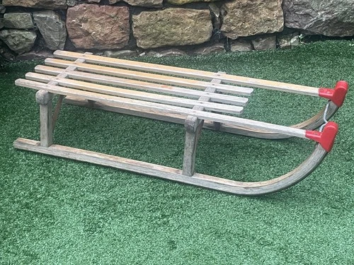 Vintage Gloco Davoser West Germany Wooden Sledge Sled Sleigh Metal Runners