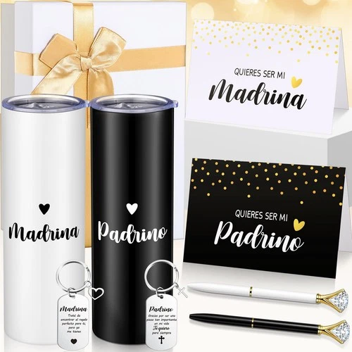 9 Pcs Godparents Proposal Gift Set: Godmother, Godfather Tumblers, Keychains, Pe