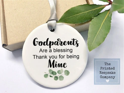 Godparents Gift, Ceramic Keepsake Ornament, Christening Baptism Thank You Gift