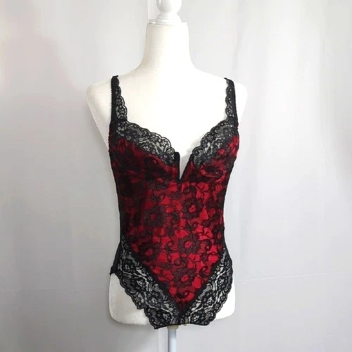Vintage Victoria's Secret Gold Label Lace Teddy Red Black Lace Sexy Large RARE