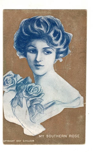 Lady My Southern Rose D Hillson Blue and Gold Antique Postcard
