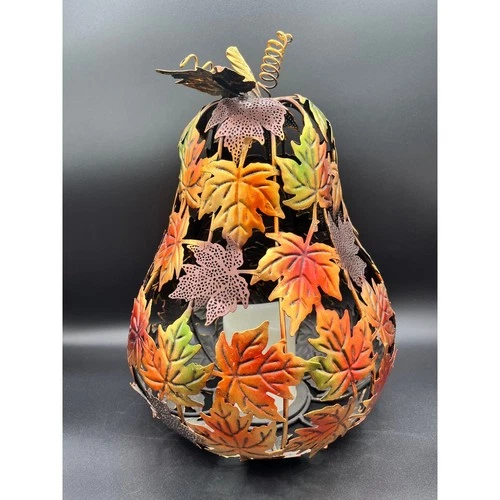 Autumn Metal Maple Leaf Gourd Lantern Light Up Fall Thanksgiving Decor 14" Decor