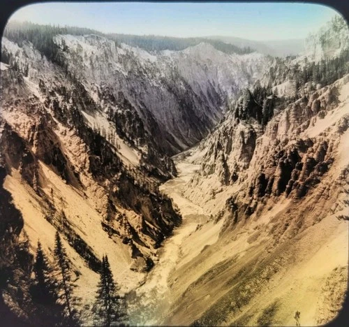 Grand Canyon of Yellowstone, Magic Lantern Glass Slide, color vtg National Park