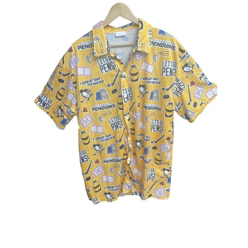 Sobe Promos Pittsburgh Penguins Yellow Graphic Print Button-up XL Hawaiian Shirt
