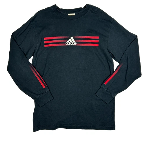 Adidas Shirt Youth L Black Three Stripes Graphic Y2K Long Sleeve Boys Pullover