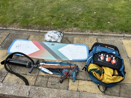 Ocean Rodeo Roam 9m+12m Kitesurfing Set with board, Duotone bar and harness set.