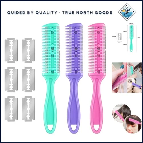 3 Pcs Hair Cutting Razor Comb Set with Replacement Blades for Hair Styling