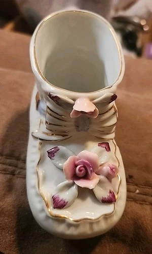 Vintage 50's Arnart Porcelain Baby Bootie Shoe Planter BLUE Rose Gold Trim Japan