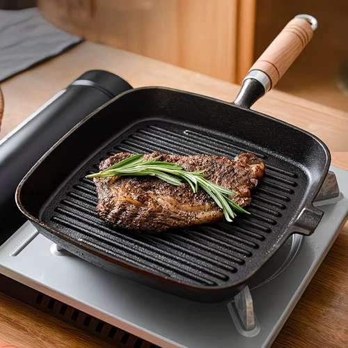 Cast Iron Griddle Frying Pan Grill Non-Stick Skillet Cooking Fry Square Steak