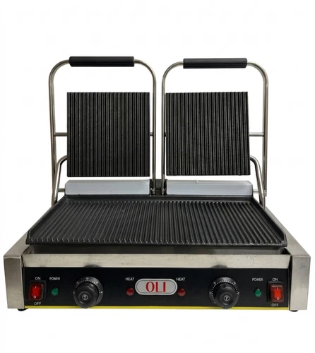 Commercial Double Contact Grill Full Grooved Panini Press Sandwich Toaster 3.6kw