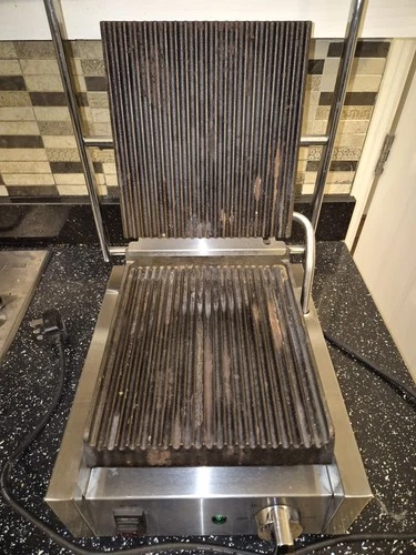 Commercial Single Contact Grill All Grooved Panini Press Sandwich Toaster 2.2kw