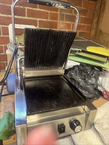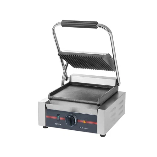 Commercial Single Contact Grill Half Grooved Panini Press Sandwich Toaster 1.8kw