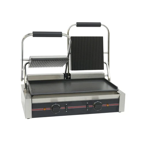 Commercial Double Contact Grill Half Grooved Panini Press Sandwich Toaster 3.6kw