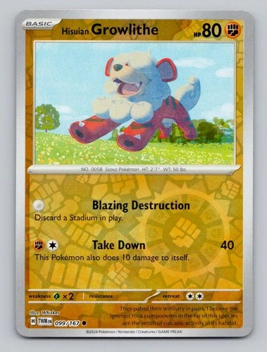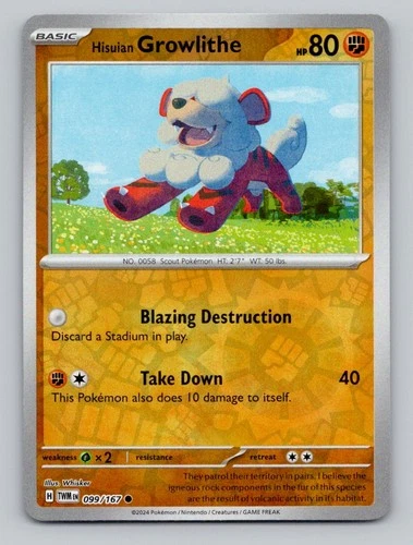 Reverse Holo Hisuian Growlithe 099/167 Common Twilight Masquerade Pokemon